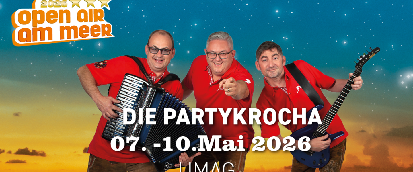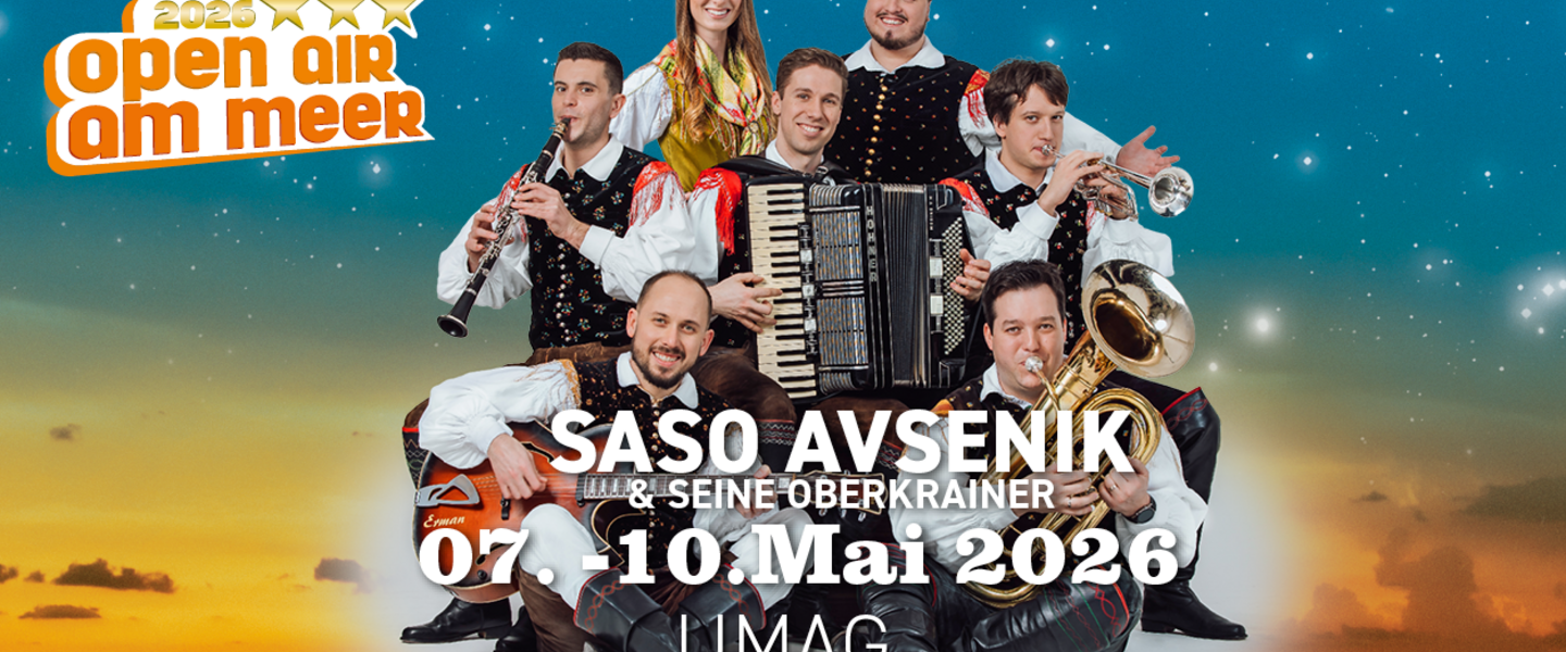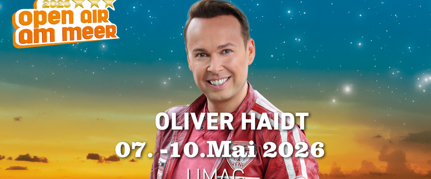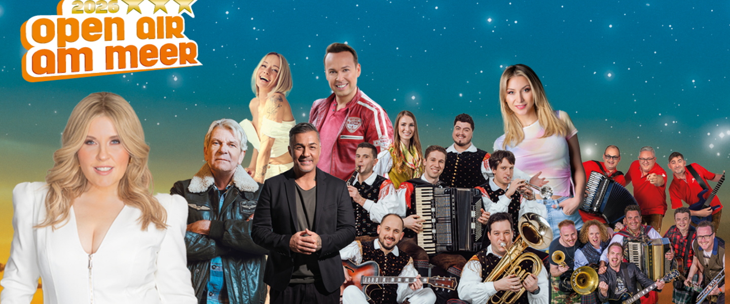 Erleben Sie mit uns unvergessliche Tage beim Open Air am Meer 2026. Gute Stimmung und Gänsehautmomente sind beim mittlerweile legendäre Schlager- und Volksmusik Open Air direkt am Meer inklusive. Mit dabei sind Maite Kelly, Matthias Reim, Mike Leon Grosch, Saso Avsenik & seine Oberkrainer, Oliver Haidt, die Lauser, Christin Stark, Anna-Carina Woitschack und die Partykrocha.